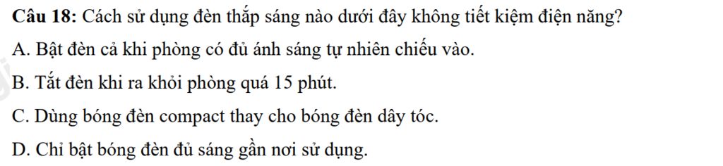 Cách sử dụng đèn thắp sáng không tiết kiệm điện năng: Bật đèn cả khi phòng có đủ ánh sáng tự nhiên chiếu vào.
