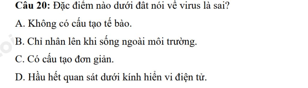 `-` Không có cấu tạo tế bào