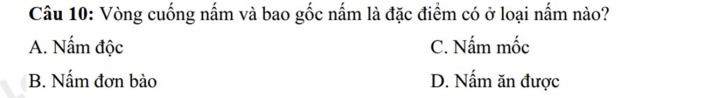 Vòng cuống nấm và bao gốc nấm là đặc điểm có ở loại nấm nào?