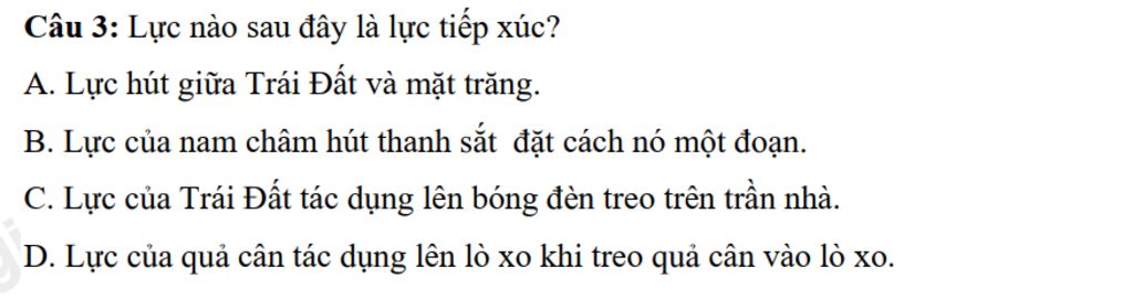 `-` Lực ở đáp án `D` là lục tiếp xúc