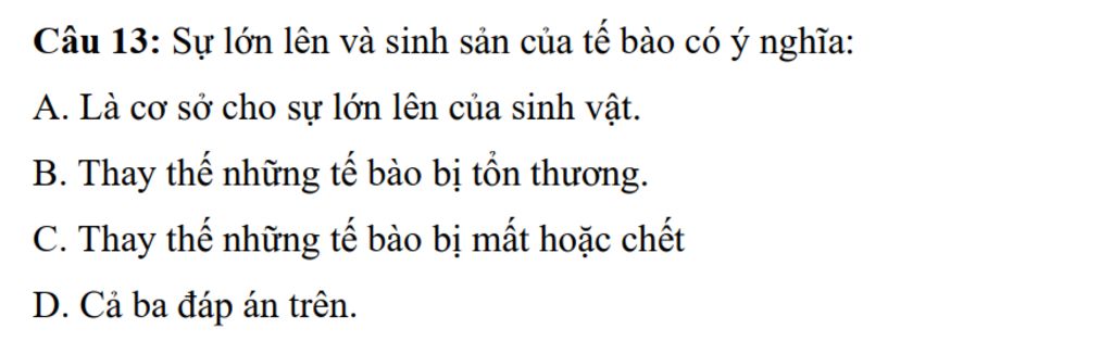Vì Sự lớn lên và sinh sản của tế bào có ý nghĩa :