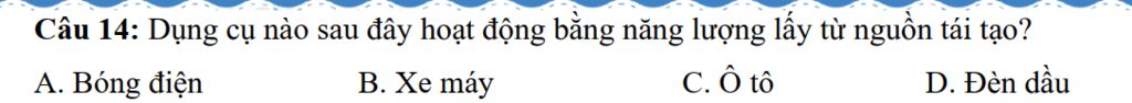 Nguồn năng lượng tái tạo gồm các năng lượng như năng lượng Mặt Trời, năng lượng gió, năng lượng thủy triều