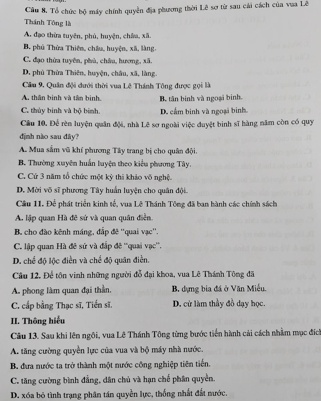 Câu 8. Tổ chức bộ máy chính quyền địa phương thời Lê sơ từ sau cải cách của vua Lê