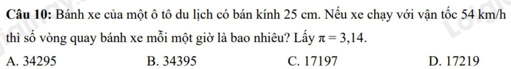 Quãng đường mà bánh xe đi được trong một giờ: `s = vxxt = 54xx1 = 54km = 54000m`