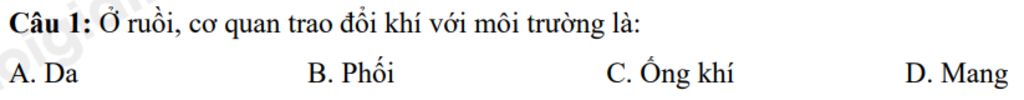 `->``bbC`$\\$Ở ruồi, cơ quan trao đổi khí với môi trường là ống khí