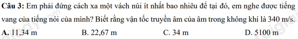 Quãng đường âm đi và trở về bằng hai lần khoảng cách từ người đến núi. Vậy để nghe được tiếng vang tiếng nói của mình, phải đứng cách núi ít nhất: