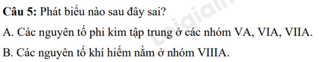 `C.` Sai vì các nguyên tố kim loại không có mặt ở nhóm VIIIA trong bảng tuần hoàn