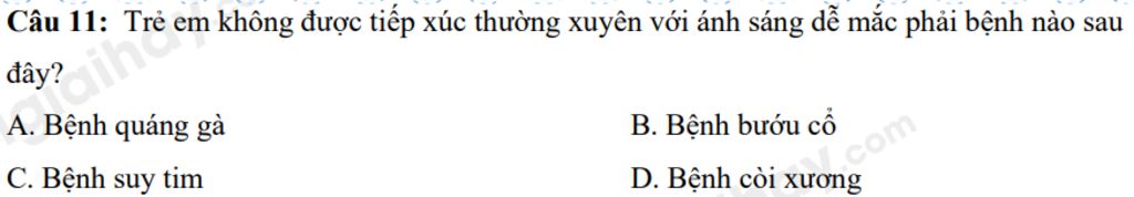 Trẻ em không được tiếp xúc thường xuyên với ánh sáng dễ mắc phải bệnh còi xương. Bệnh này thường xuất hiện do thiếu hụt vitamin `D`, được tạo ra trong cơ thể dưới ánh sáng của mặt trời