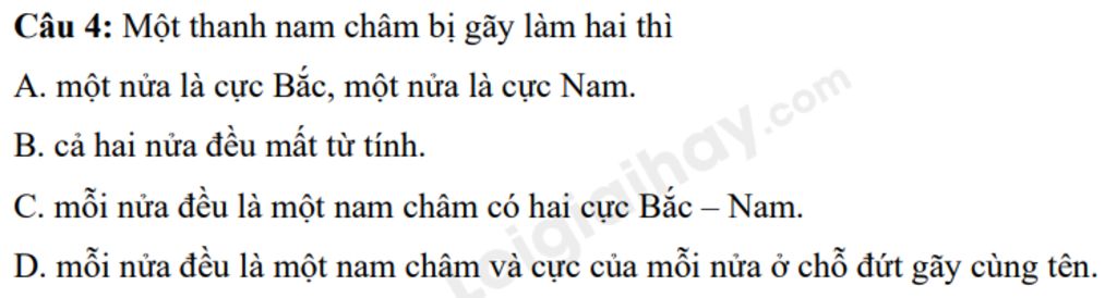 Câu 4: Một thanh nam châm bị gãy làm hai thì