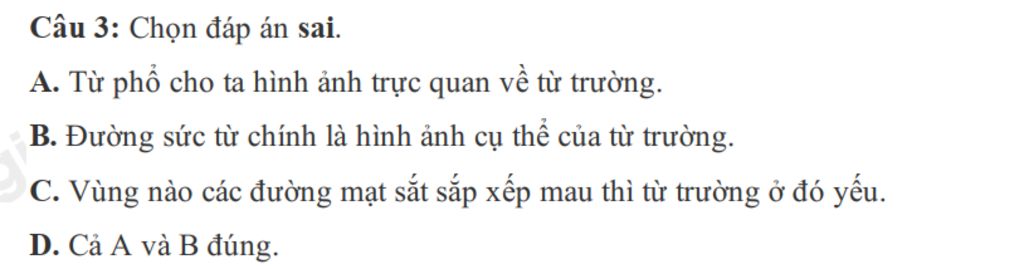 `-` Từ phổ cho ta hình ảnh trực quan về từ trường ( Đúng )