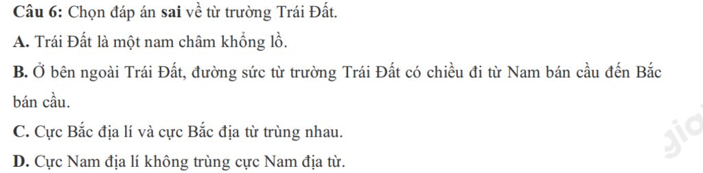 `-` Cực Nam địa lí không trùng cực Nam địa từ.(sai)