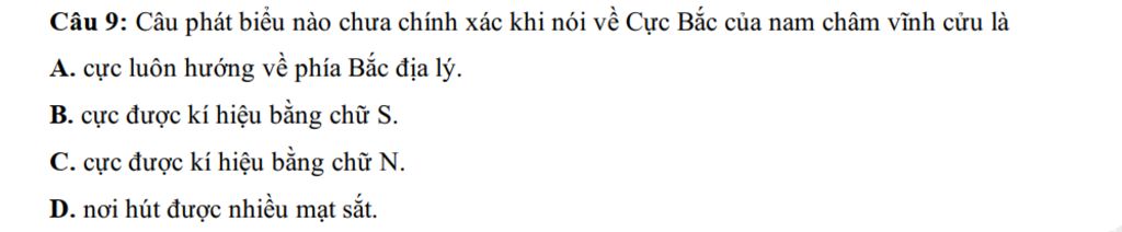 `-` Nam châm vĩnh cửu là cực luôn hướng về phía Bắc địa lý, cực được kí hiệu bằng chữ N và nơi hút được nhiều mạt sắt.