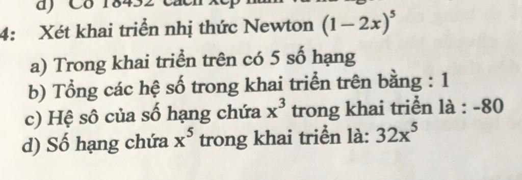 $\text{d) Sai, vì: Hệ số của số hạng chứa }$$x^5$$\text{ là }$$-32x^5$$\text{ chứ không phải }$$32x^5$$\text{ (Xem hệ thức tại câu a)}$