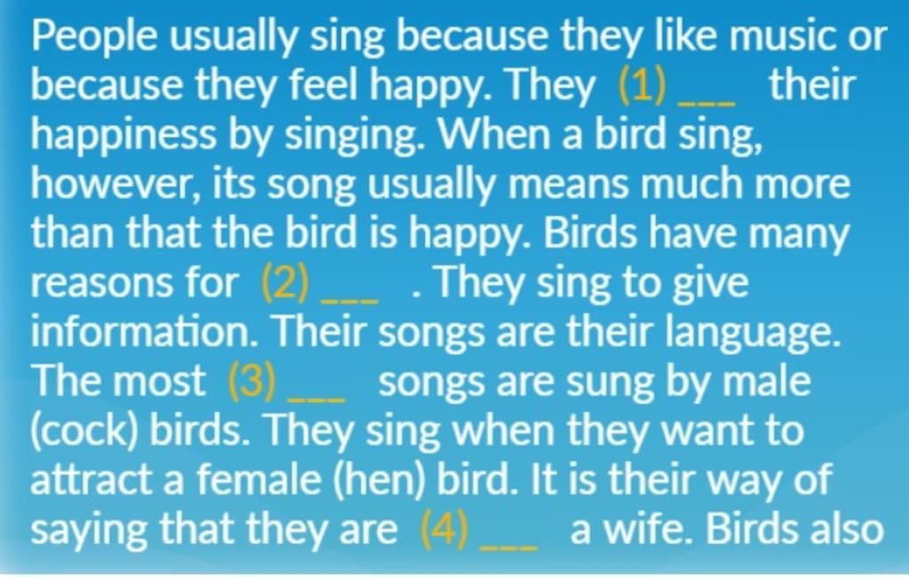 2. Singing ( vì ở câu sau là they sing to give information)