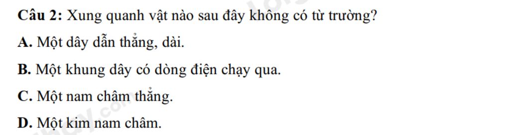 Câu 2: Xung quanh vật nào sau đây không có từ trường?