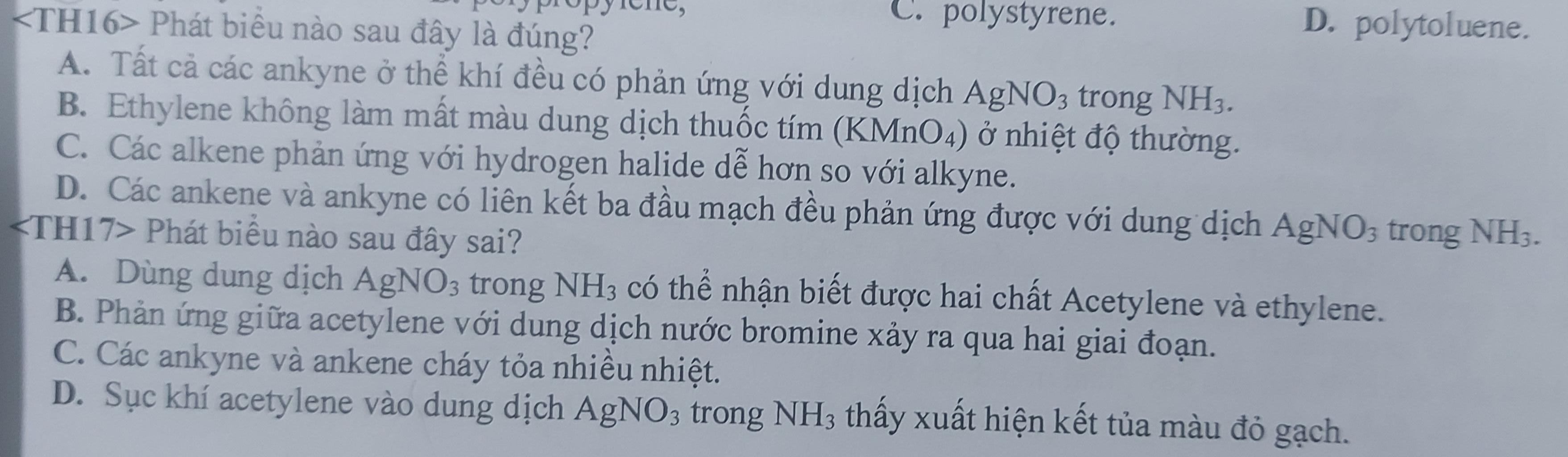 b, Sai. Alkene làm mất màu dung dịch thuốc tím ở điều kiện thường.