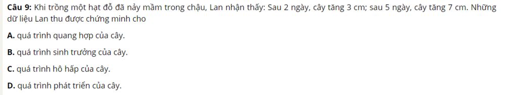 `-` Quá trình sinh trưởng được thể hiện qua việc tăng kích thước ở cây