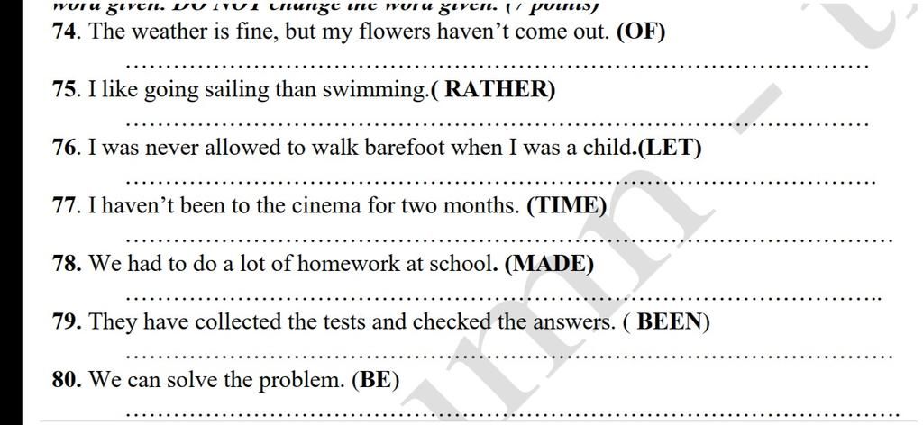 `78.` We was made to do a lot of homework at school.