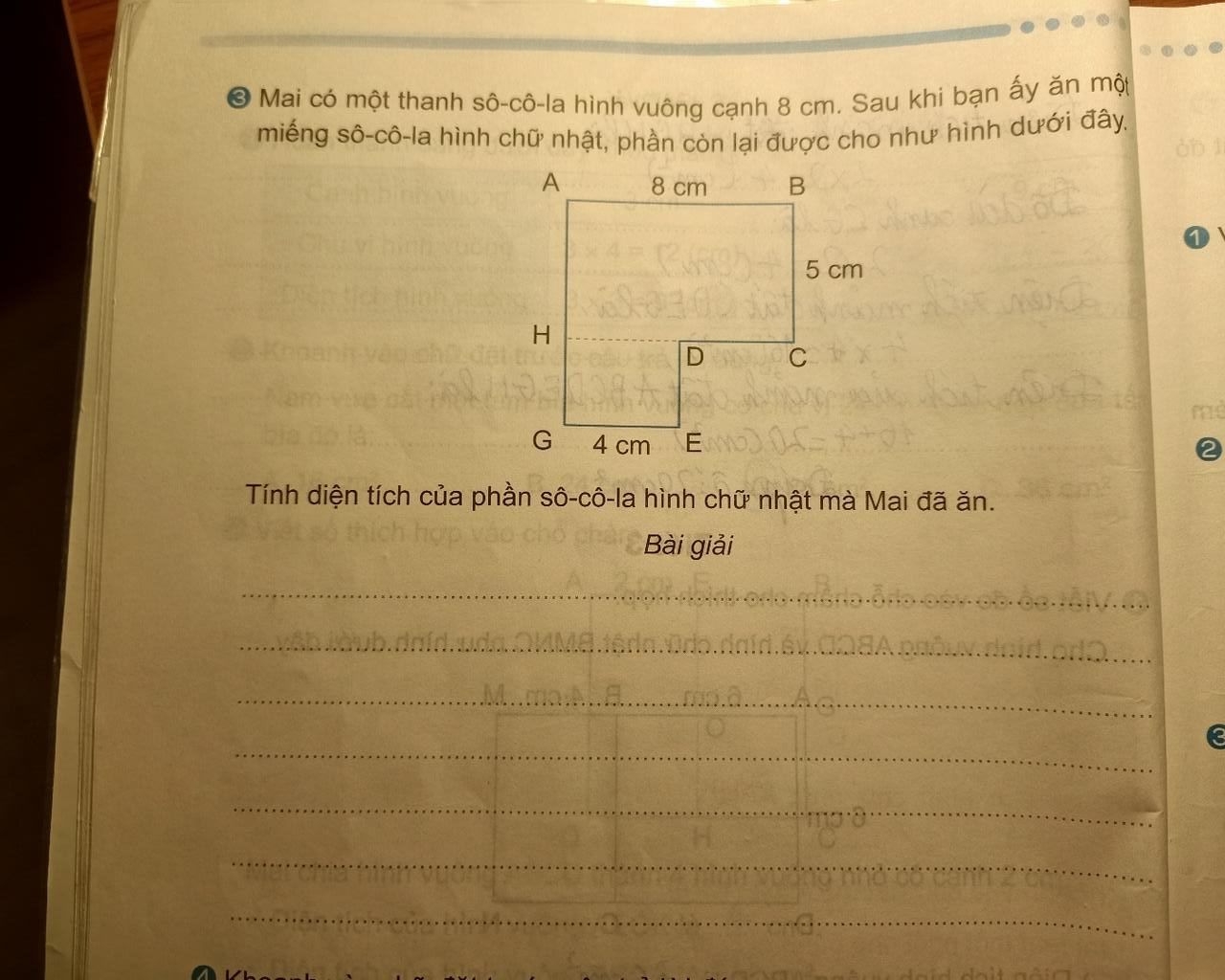 Diện tích phần sô cô la hcn Mai đã ăn là :