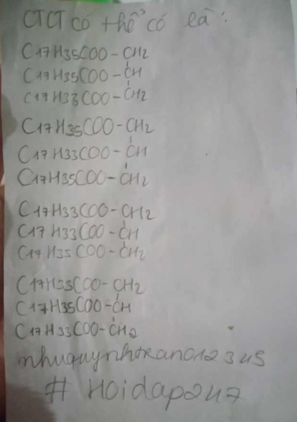 hoàn toàn tạo ra glixerol và các muối C17H35COONa, C17H33COONa. Cho biết công thức cấu