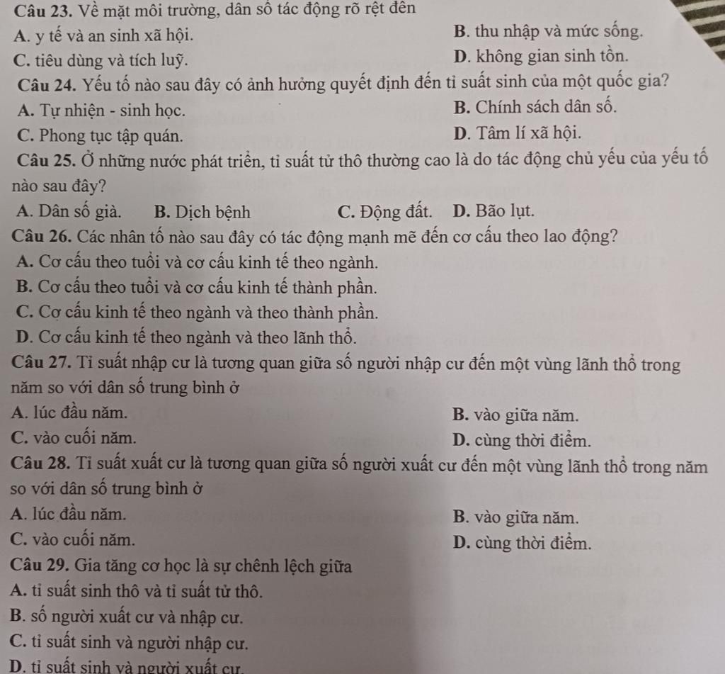 C24. B. Chính sách dân số.
