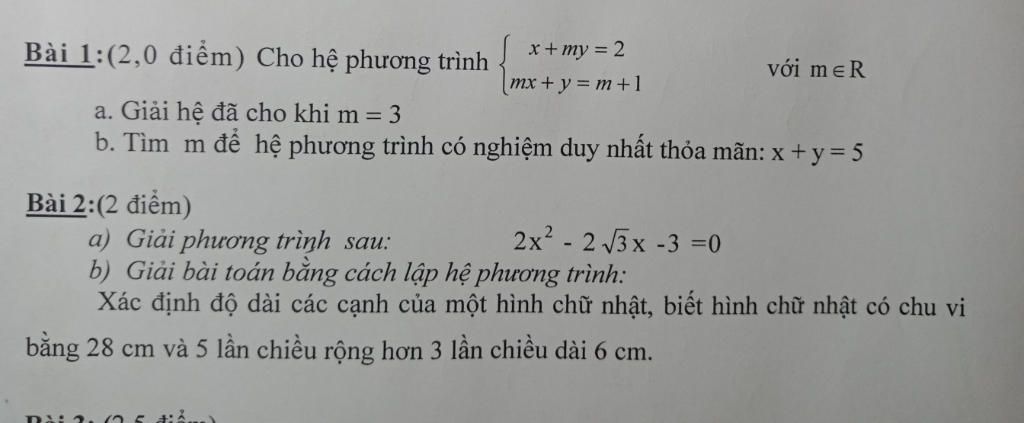 Thay vào HPT, ta được: $\left \{ {{5 - y+my=2} \atop {m(5-y)+y=m+1}} \right.$