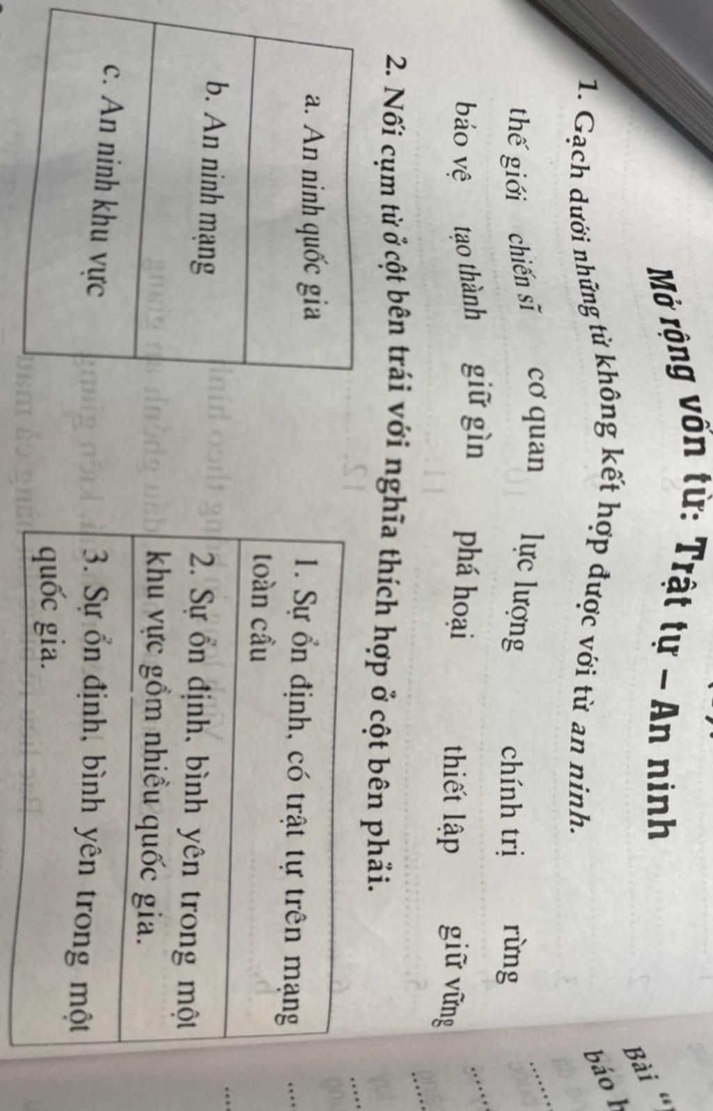 + An ninh quốc gia: Sự ổn định, bình yên trong một quốc gia.