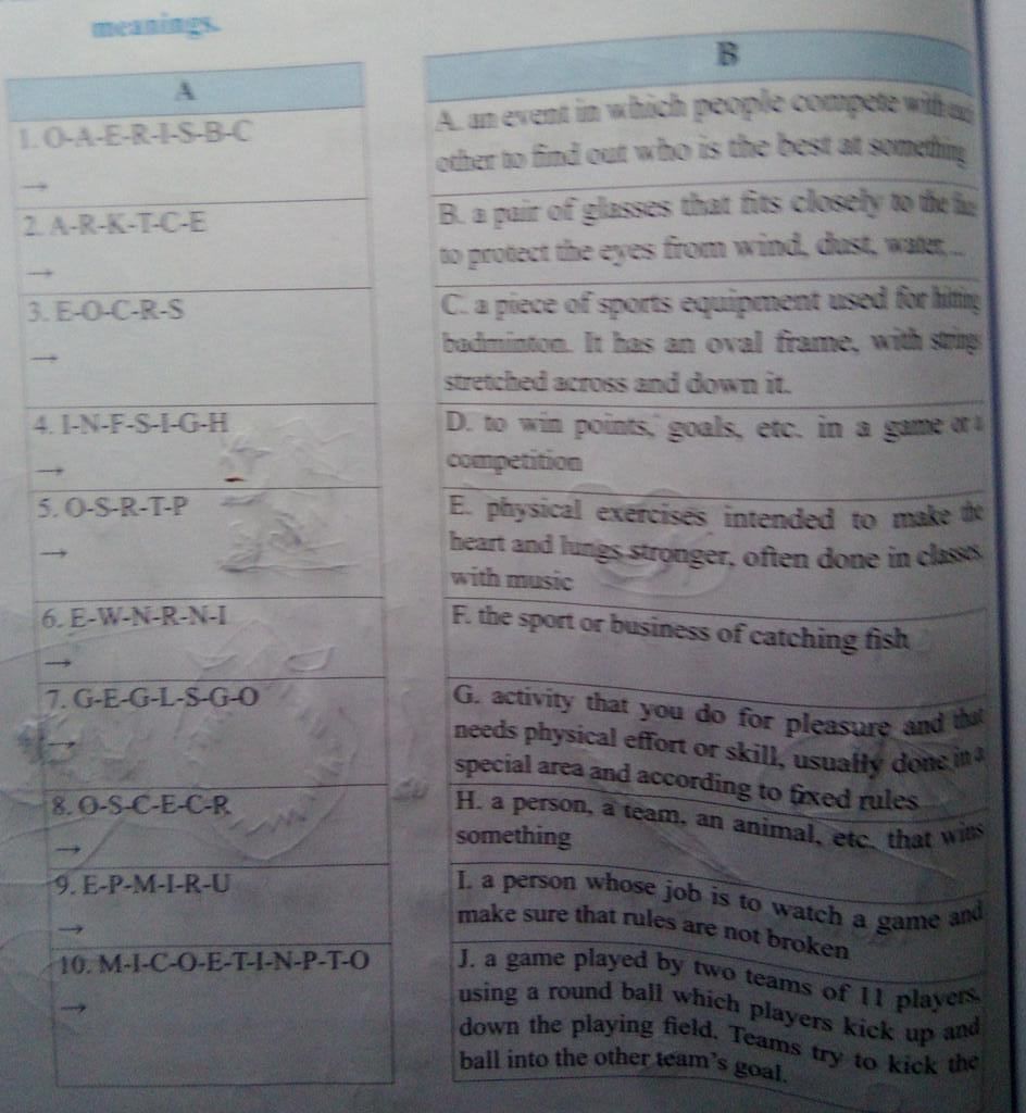 1. aerobics: thể dục nhịp điệu - E