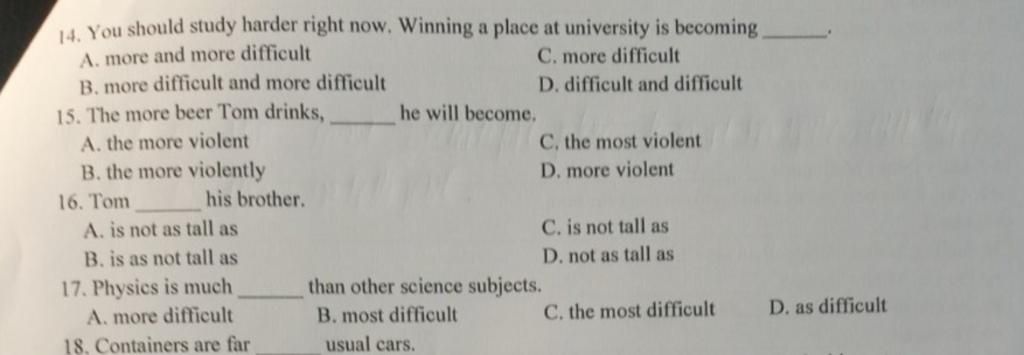 Giải thích: S + become + more and more + long adj/adv ( vì difficult là long adj nên giữ nguyên)