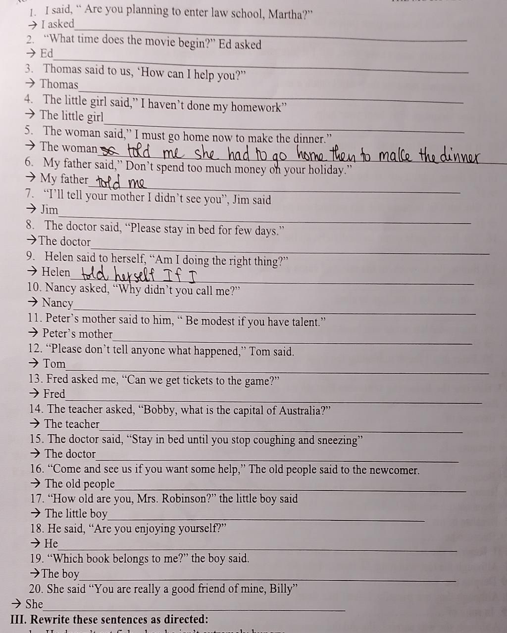 Câu tường thuật - dạng câu yêu cầu, mệnh lệnh