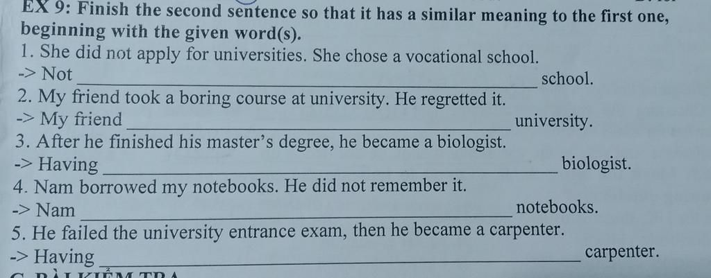 EX 9: Finish the second sentence so that it has a similar meaning to the first one,