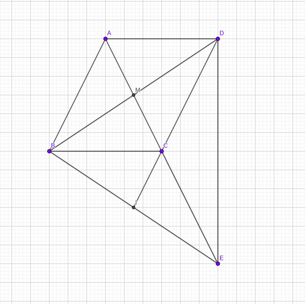 c.Ta có: $CE=CA=2CM, MB=MD\to M$ là trung điểm $BD, C\in EM$