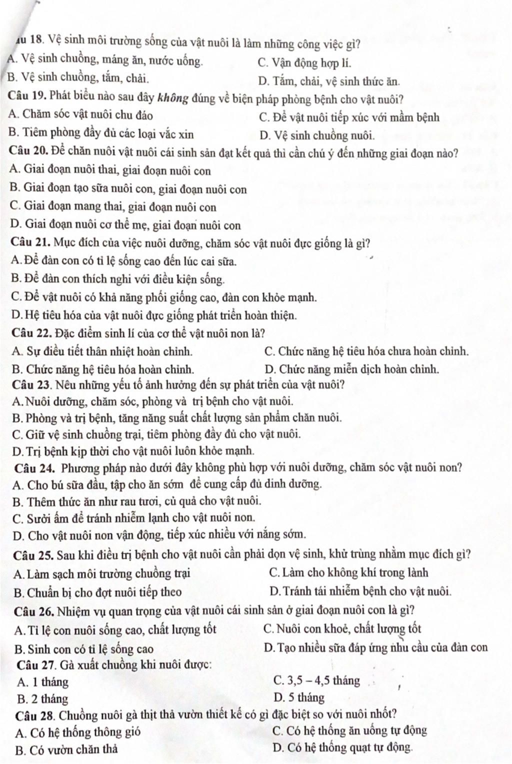 Câu 18: A. Vệ sinh chuồng, máng ăn, nước uống.