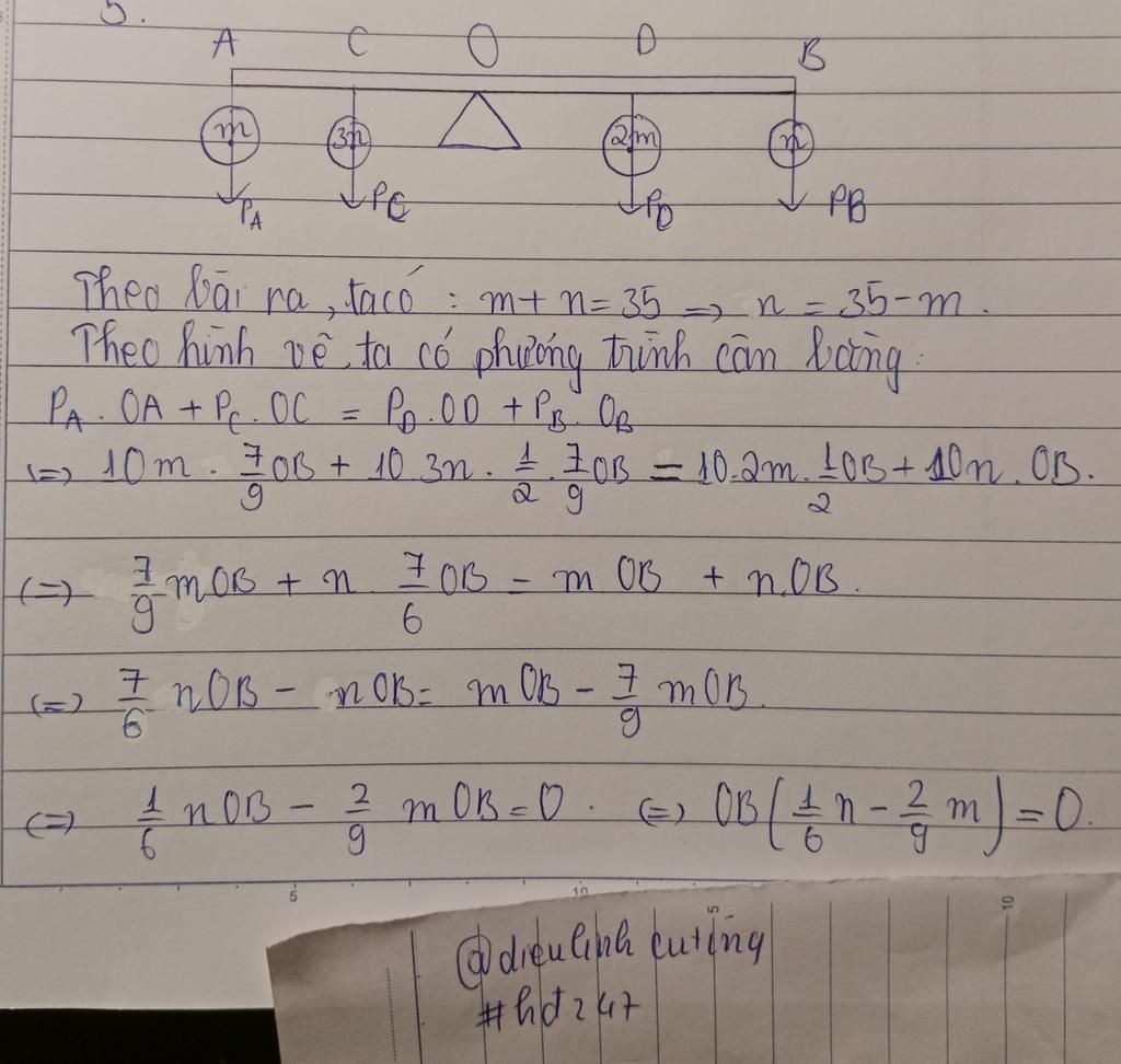 `<=> m_A . OA + m_C . [OA]/2 = m_D .[OB]/2 + m_B . OB`