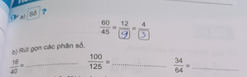 `b) 18/40 = ( 18 : 2 )/( 40 : 2 ) = 9/20`