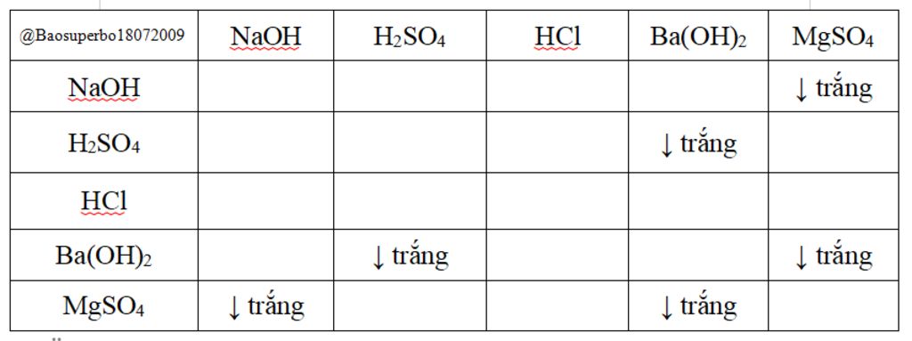$~~~+$ Nhóm 2: các mẫu thử tạo 2 kết tủa là $Ba(OH)_2$ và $MgSO_4$