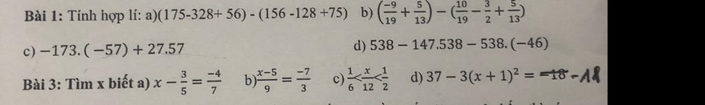 b) ($\frac{-9}{19}$ +$\frac{5}{13}$ ) - ($\frac{10}{19}$ - $\frac{3}{2}$ + $\frac{5}{13}$ )