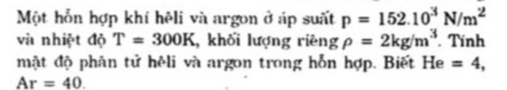 Gọi số mol phân tử khí Heli, Argon lần lượt là `n_1, n_2 (mol)`.