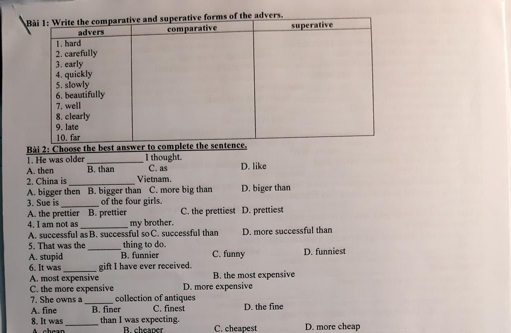 `\star` So sánh hơn (Tính từ ngắn/Trạng từ ngắn) `-` Giữa hai vật