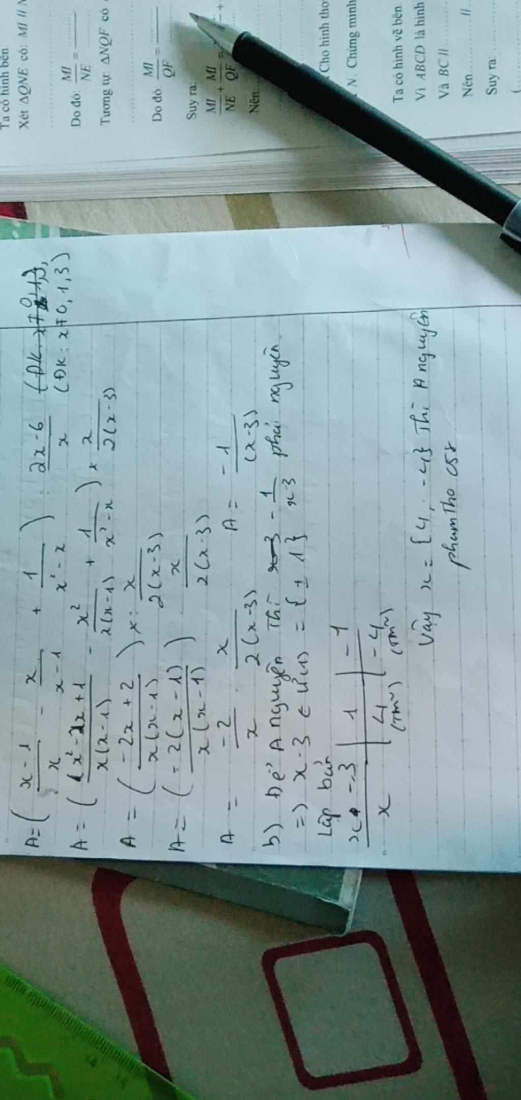 Vậy với ` x ne 0 ; x ne 1 ; x ne 3 ` thì ` A = (-x+1)/(x-3) `
