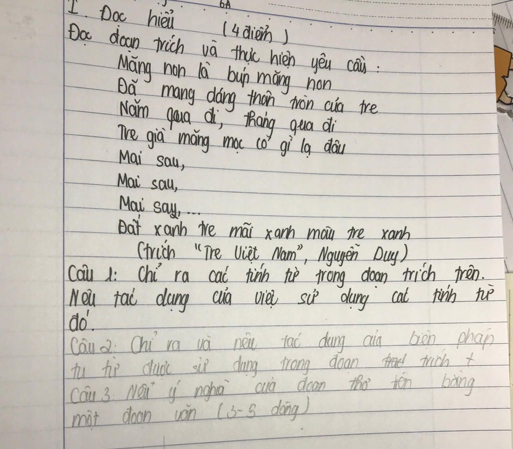 Câu 2: Điệp ngữ 'xanh' ở đoạn thơ cuối.