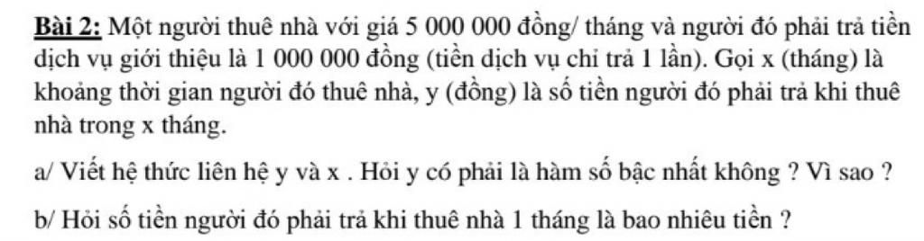 a.Ta có: $y=x\cdot 5000000+1000000$