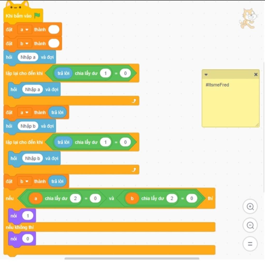 - In ra 1 nếu hai số có cùng tính chẵn – lẻ, ngược lại in ra số 0.