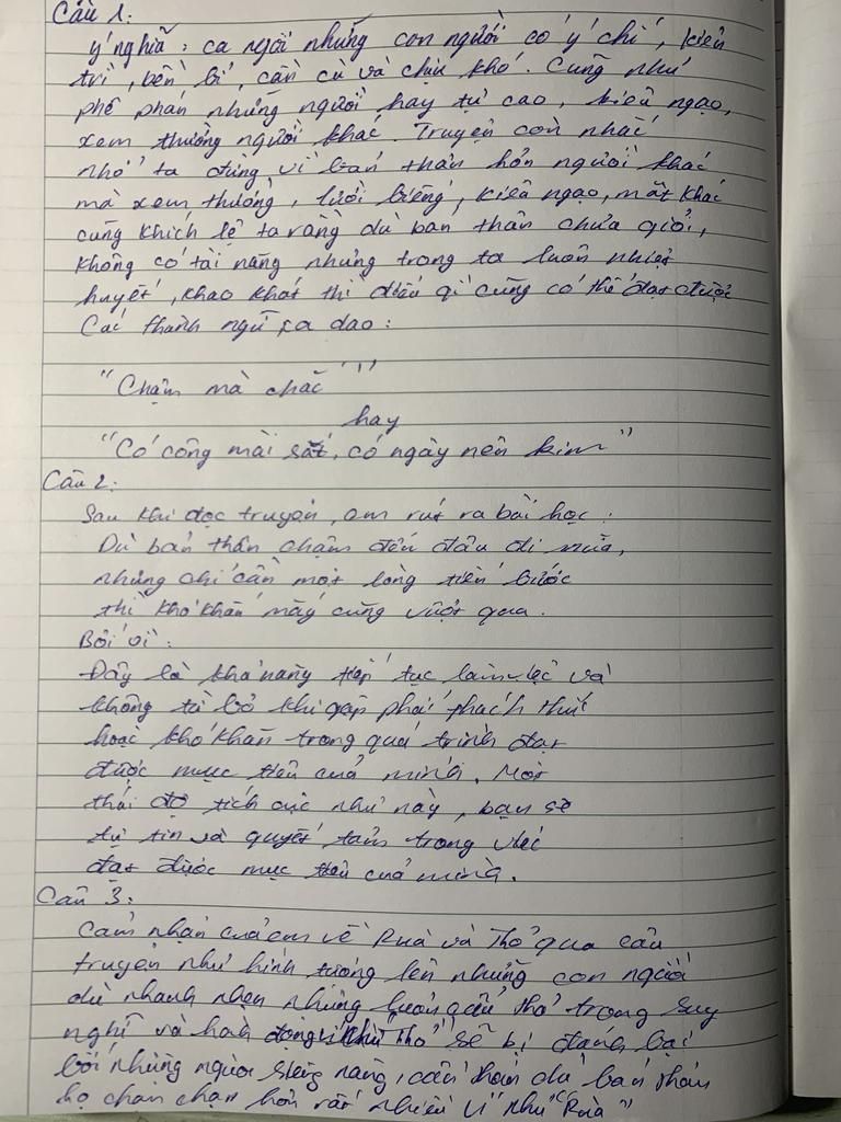Câu 3 : Viết đoạn văn khoảng 5 dòng nêu cảm nhận của em về nhân vật chú Rùa hoặc Thỏ.