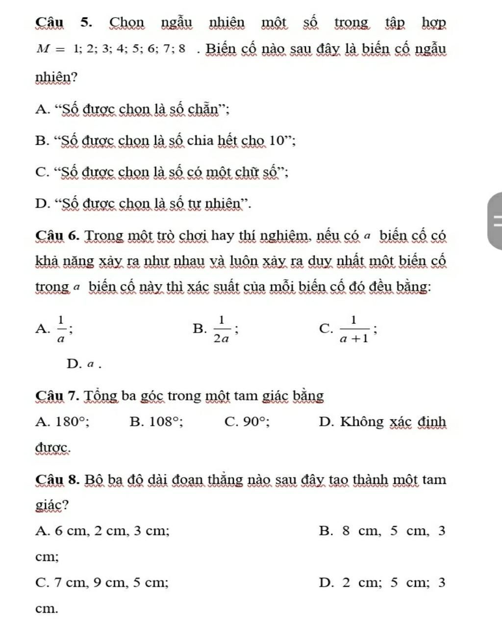 Vì trong biến cố chỉ có a là biến cố