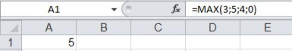 Kết quả: `=MAX``(3;5;4;0)` là: `5`