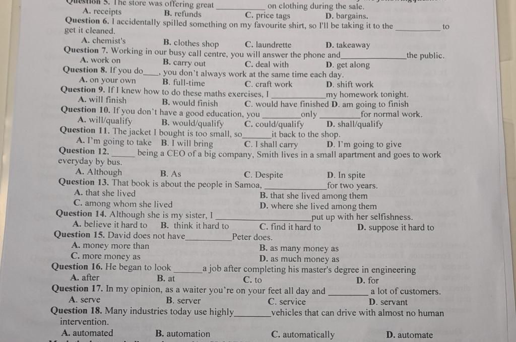 Question 6. I accidentally spilled something on my favourite shirt, so I'll be taking it to the