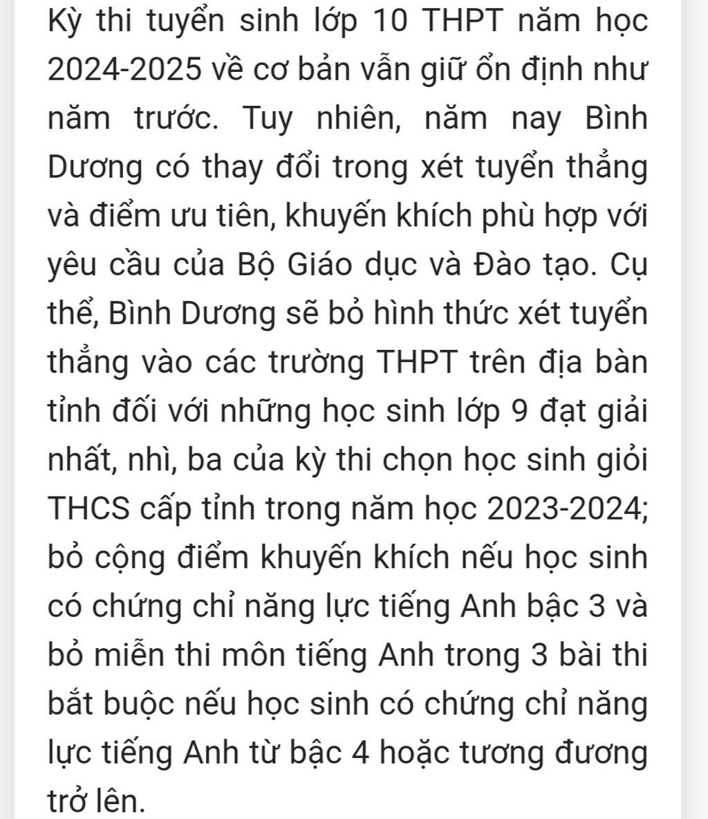 thể, Bình Dương sẽ bỏ hình thức xét tuyển