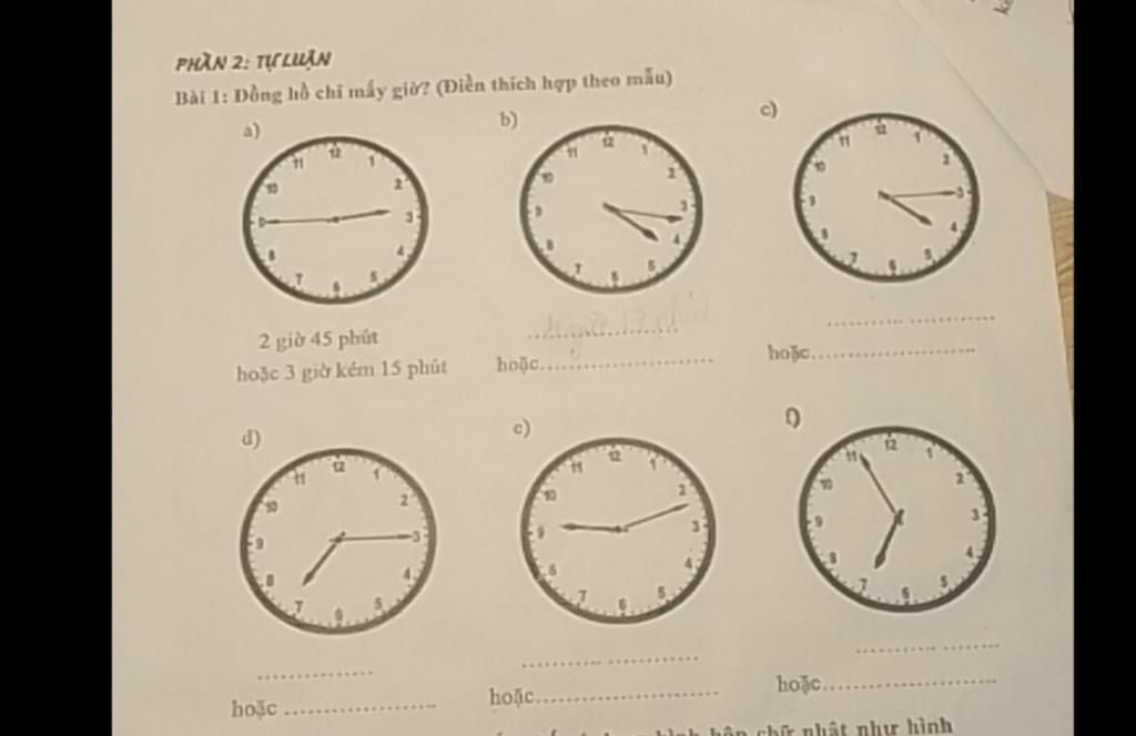 `d) 7` giờ `15` phút hoặc `8` giờ kém `45` phút