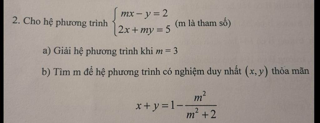`<=> {(y=mx-2),(2x+m^2x=5+2m):}`